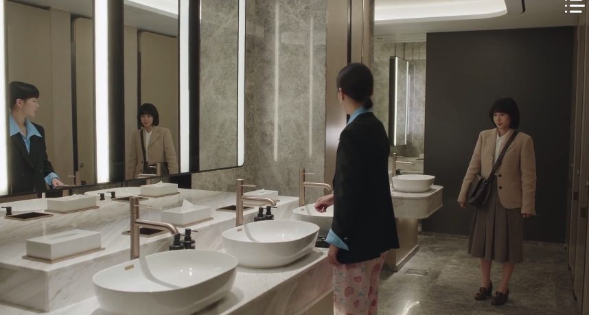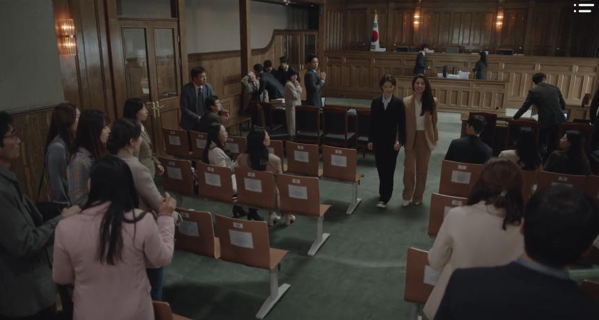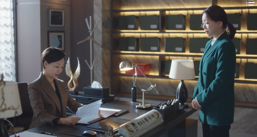 The CEO of Taesan Law Firm, Tae Soo-mi, gives an interview with a journalist and shares her plans of stepping down as the CEO to return as an attorney. After the interview concludes, she receives an update from her staff on Mr. Kim’s lawsuit against Daehyeon Hotel. After scanning through the Statement of Opinion, CEO Tae is quite impressed with Hanbada’s work on the case and how they managed to actually do something that her law firm couldn’t do. Perhaps the most impressive thing on the document is the name of the attorney who played a crucial role in the success and results of the lawsuit: Attorney Woo Young-woo. Extraordinary she is, indeed.