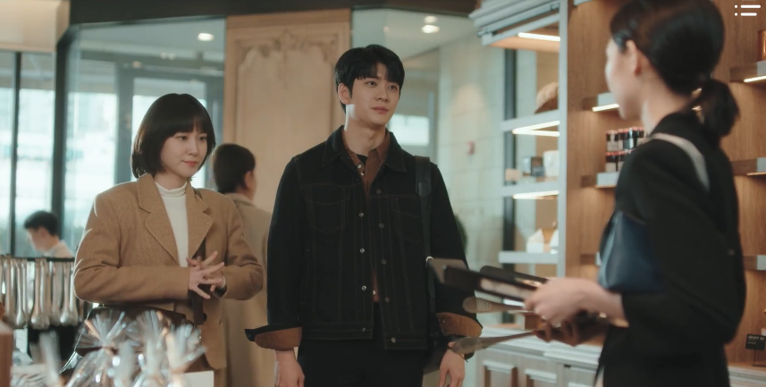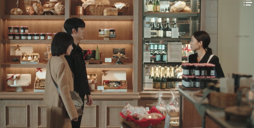 Young-woo and Jun-ho spend some alone time together at a bakery and Young-woo takes his chance to talk about whales again. However, Jun-ho utilizes Soo-yeon’s advice about creating boundaries with Young-woo and suggests a new idea: they can still speak about whales but only during lunchtime (unless it’s absolutely necessary of course). Outside of lunchtime, they can speak about anything else they want. So with that, Young-woo agrees. As long as she can still talk about whales when necessary, she’s fine with the new rule. After creating boundaries, the pretend soon-to-be newlyweds flag Ji-hye down at the bakery and plead once again for Ju-hui’s contact information. It’s pertaining to the wedding incident and they desperately want to get in contact with her. Ji-hye is still cautious, but she also opens up about Ju-hui. It’ll be difficult to get in contact with her as she’s no longer in the country.
