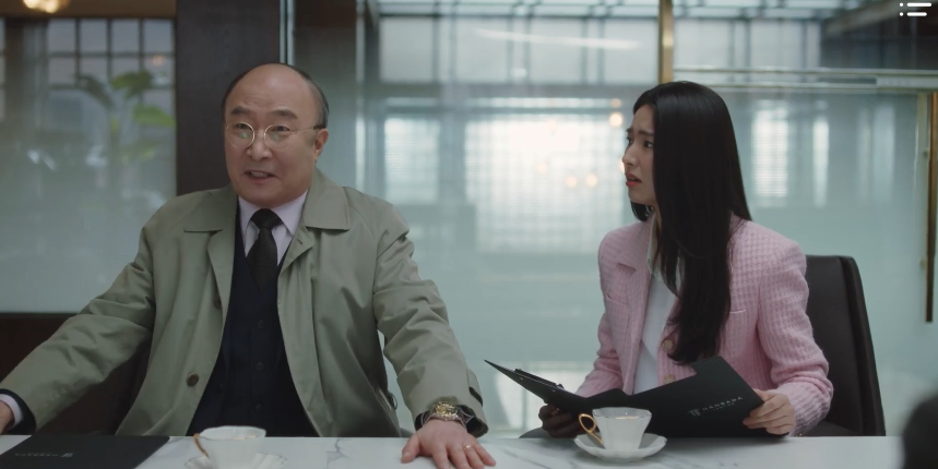 CEO Han and the team meet with Hwa-young and her father in a follow-up meeting to discuss the updates to the case. Now that they know about the promised gift of land, they can demand compensation according to the value of that property of land (which is definitely over a billion won). Hwa-young’s father is elated and excited at the news; this definitely makes Hanbada different. But Hwa-young doesn’t feel so good about the lawsuit. In fact, she speaks up and advocates for herself. This is her case so her opinion is important and she wishes that her father not take advantage of the incident for his own selfish reasons. But her father can care less about her feelings and wishes to proceed with the lawsuit. The meeting eventually concludes and everyone exits the room, leaving Hwa-young behind by herself.