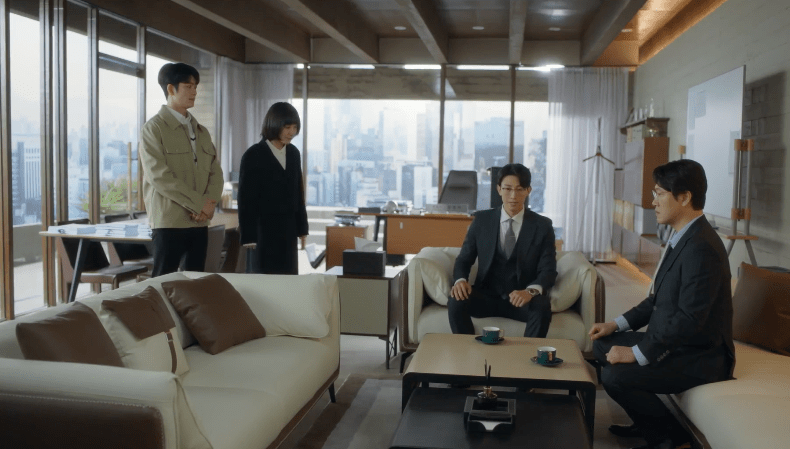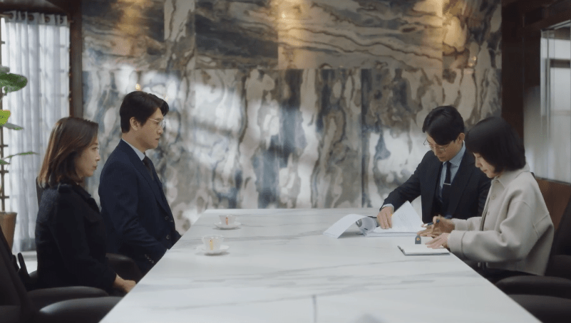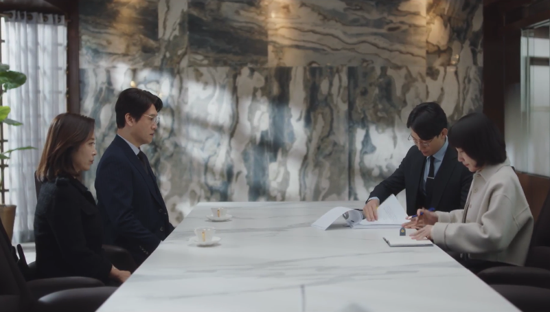 Attorney Jung brings this issue to CEO Han’s attention and requests that she speak with Jeong-hun’s dad to change his mind. But Jeong-hun’s dad still is a client and it’s CEO Han’s job to do whatever her clients want. Instead, she suggests that Attorney Jung change his approach. Actions speak louder than words. He can prove that he and Young-woo are a team and back out of the court case as well. They’ll hand the court case over to another attorney within the law firm instead.