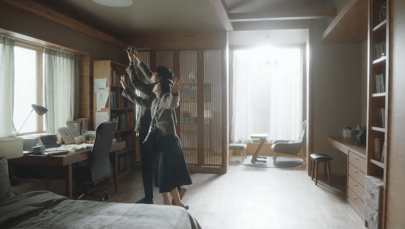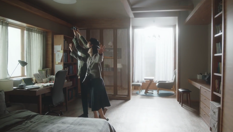 Jun-ho and Young-woo are invited into Sang-hun’s bedroom and they resume with their investigation. They take out a camera and imagine what it’d be like if they were Jeong-hun in that moment that he discovered his brother hanging himself. To assume Jeong-hun’s height, they point the camera upwards and start from the bedroom door to the spot where Sang-hun’s body was found. But there has to be more.