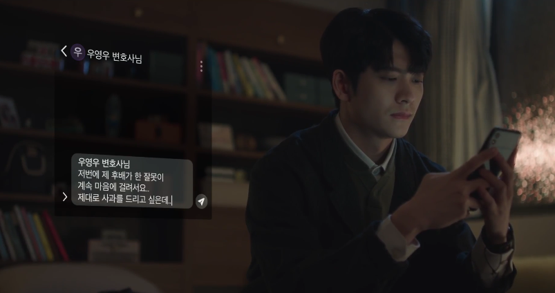 Jeong-hun’s dad lashes out at Young-woo for her arguments and for caring more about Jeong-hun than protecting Sang-hun’s name. He decides to part with Hanbada and refuses to work with the law firm any longer on the case. With that, he storms out of the office and Young-woo processes what just happened. When Jun-ho gets home from work that night, he heads straight into his room and debates on how to approach Young-woo for what happened earlier that day with his college friend. He prepares to send a text to Young-woo to apologize, but he stops himself from doing so at the last second. Apologizing won’t change anything, but deep down, the interaction bothers him and he can’t stop thinking about it. Oh, my heart.