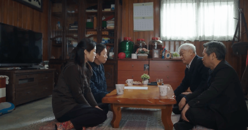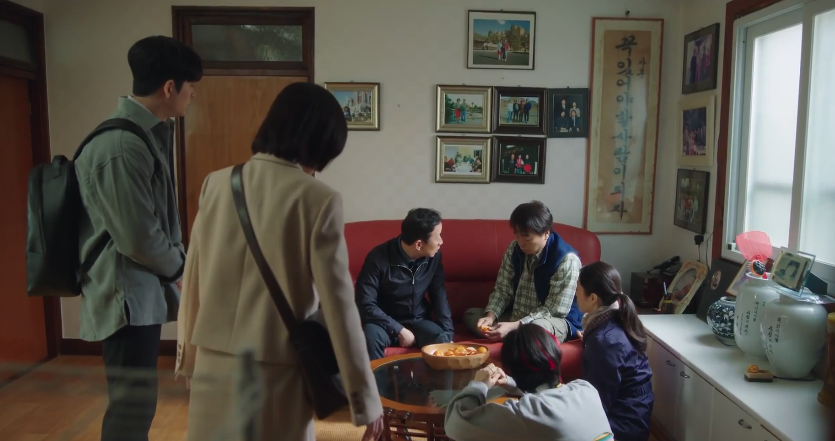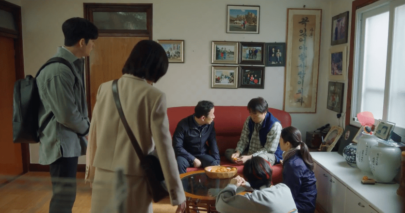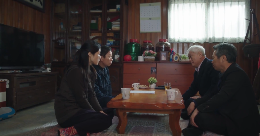 After the trial concludes, Dad Dong-sam’s family, Attorney Jung, and Young-woo find both brothers waiting outside the courtroom for them. They accuse Dad Dong-sam of being greedy and hungry for money and even uses their parent’s name to continue the blame and guilt trip. Attorney Jung emphasizes once again the importance of having firm evidence: were there any threatening phone calls or texts? Or maybe witnesses? Upon hearing about witnesses, there is someone that pops up in Dong Geu-ra-mi’s mom’s mind. The head of the village, Jin-hyuk. He was there on that day fixing the roof, but left once the two brothers arrived. But did he really leave though? Maybe he overheard the land compensation conversation.