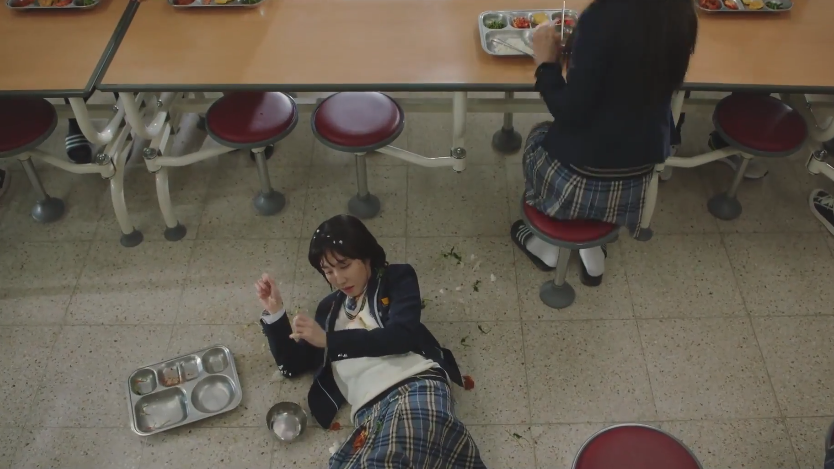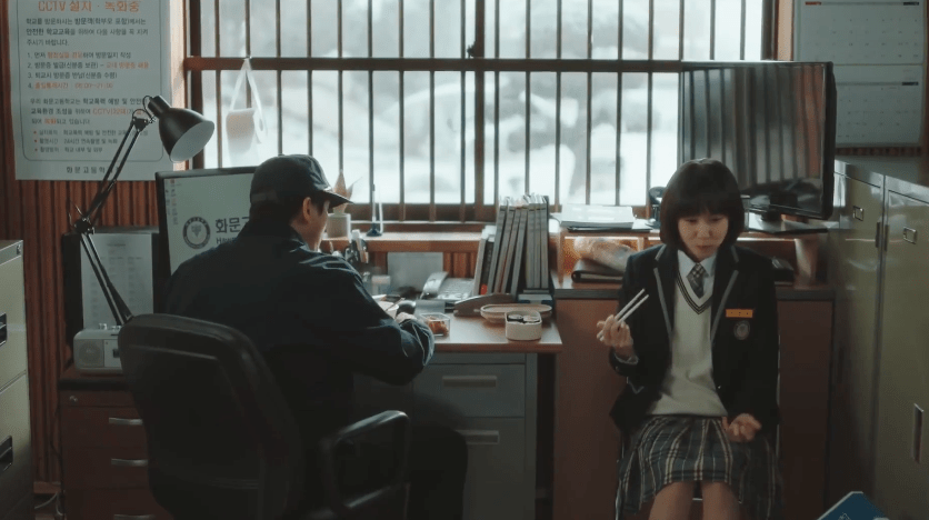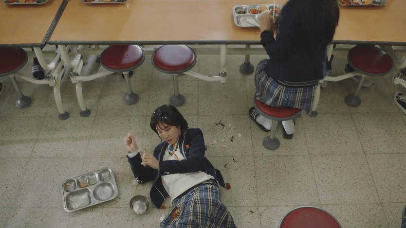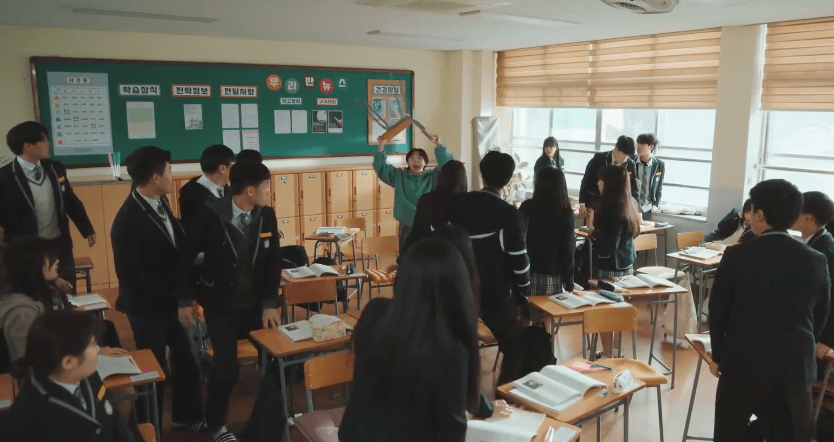 On this particular day, Young-woo was passed a note by a classmate to ask their teacher where she got her eyes done which Young-woo ended up doing. Embarrassed and ridiculed, the teacher slapped Young-woo in the face in front of the entire classroom and stormed out of the room. This compelled Dong Geu-ra-mi to seek revenge for Young-woo as a result. She hit the classmate who passed the note to Young-woo in the back of her head and gave her a taste of her own medicine. Chaos ensued in the classroom and all the classmates perceived Dong Geu-ra-mi as if she was a psycho. That’s what everyone called her and saw her as.