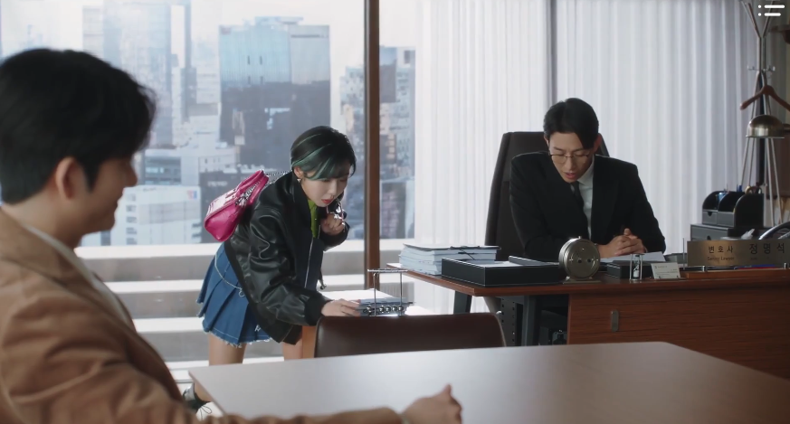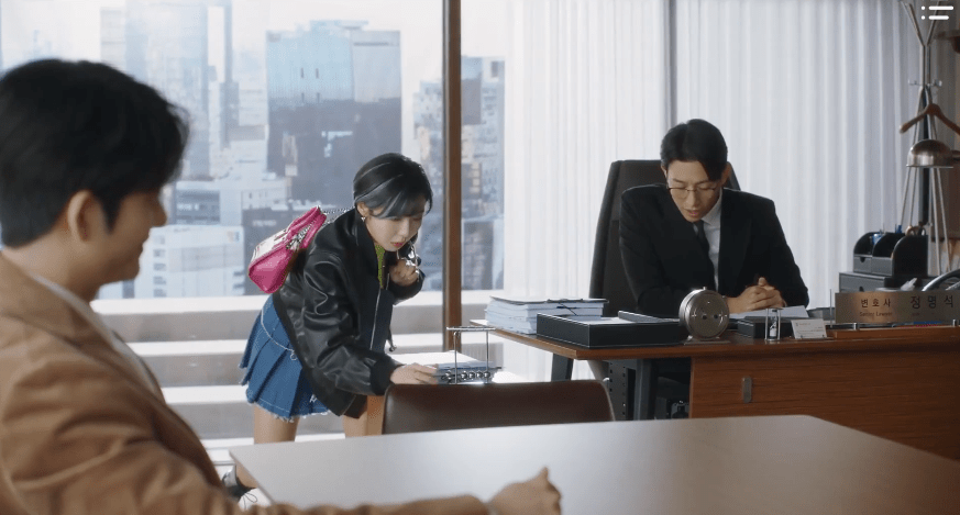 Young-woo helps out with Dad’s gimbap restaurant as a part-timer, but she receives a sudden phone call from Dong Geu-ra-mi with status updates. After speaking with Attorney Jung, he won’t take on the case. But wait. What about the fraud and compulsion? What about Dong-il’s deception? However, there’s more to the case that Young-woo isn’t aware about since she still is a rookie attorney. Dong Geu-ra-mi eventually gives up as the messenger and has Young-woo talk to Attorney Jung herself on the phone while she and Jun-ho listen in on the conversation (eeeek, Jun-ho is also there in the office with them). There’s ultimately no evidence for the deception and compulsion so it’s unlikely Dad Dong-sam will win the case. Attorney Jung also advocates for Young-woo to come in-person to Hanbada herself if she has anything additional to say. With that, he hangs up and Young-woo rushes over to her former workplace.