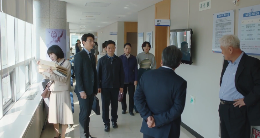But wait, the legal team for the two brothers suggests that maybe the assault was executed on purpose so that Dad Dong-sam could cancel the gift. So Young-woo turns it back on him and asks him the same exact question she had been facing throughout the case: does he have firm evidence to support his claim? (HAHAH OOOO, GO YOUNG-WOO!). With that, the judge approves the change in the purpose of the claim aaaand the attorney for the two brothers acknowledges their defeat. Dad Dong-sam and his family silently rejoice while Attorney Jung congratulates Young-woo on her good work. Min-woo also watches from afar in the back and is quite impressed with the outcome.