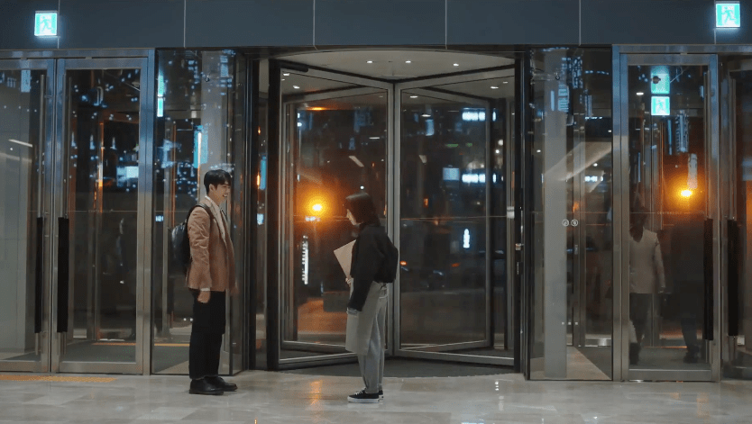 After reuniting with the Hanbada team, Young-woo waits down in the lobby for Dong Geu-ra-mi. Jun-ho enters the lobby only to find Young-woo waiting near the revolving doors by herself and excitedly greets her (omg he’s so happy seeing her. MARY TRY NOT TO CRY CHALLENGE #1). He first brings up how he misses eating with her; it hasn’t been the same since she’s left (MARY TRY NOT TO CRY CHALLENGE #2). But wait, what about the gift that he got her and put on her desk? Since Young-woo wasn’t aware that it was from Jun-ho, she unfortunately threw it away (MARY TRY NOT TO CRY CHALLENGE #3). Their conversation is unfortunately cut short when Dong Geu-ra-mi appears. She and Young-woo head out together, but of course, Dong Geu-ra-mi is quick-witted and she pays close attention to Jun-ho’s heartbroken and dejected face expression. She can sense that there’s something going on between Jun-ho and Young-woo.