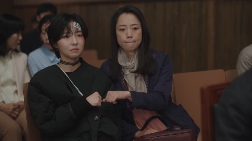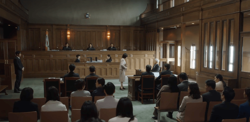 So during the next court hearing, Young-woo presents evidence to support a new claim: a gift can be legally cancelled. It’s obvious Dong Geu-ra-mi and Dad Dong-sam are injured as they were assaulted by both brothers and Dong Geu-ra-mi’s mom’s phone call to the police is evidence of that. Given the situation, Dad Dong-sam can cancel the gift that is the land compensation as the recipients (the two brothers) committed a crime against the giver (Dad Dong-sam) and the giver’s immediate family (Dong Geu-ra-mi). In addition to their original claim, they would like to add the cancellation of the gift contract to the case.