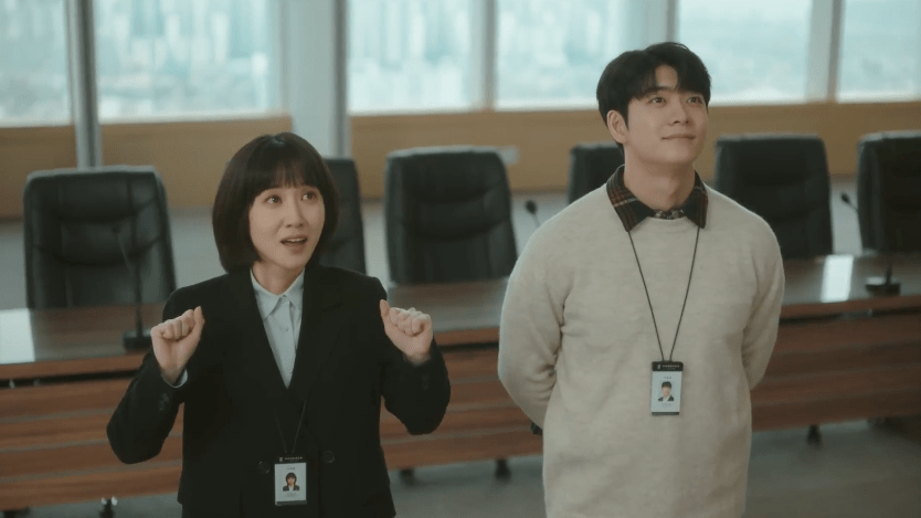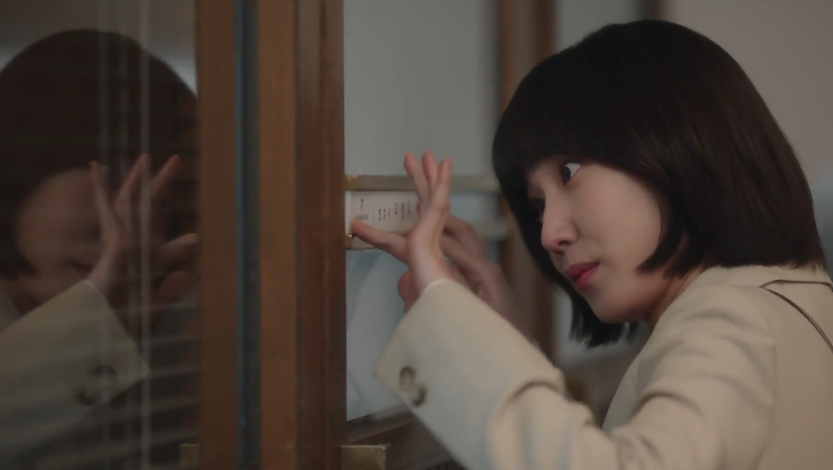 Young-woo stops by Attorney Jung to check in with him on her employment status at Hanbada. Did he happen to process her resignation letter yet? When Attorney Jung states that he hasn’t, Young-woo asks if she can continue to work at Hanbada. Attorney Jung is internally relieved at Young-woo’s decision, but he is clear on his expectations of her. She can return to work as long as she shows up to work everyday since she’s already used up many of her leaves of absences. Young-woo agrees and she returns to her office. First things first: she places her nameplate back to where it belongs and then rejoices inside the room. This is her second home.