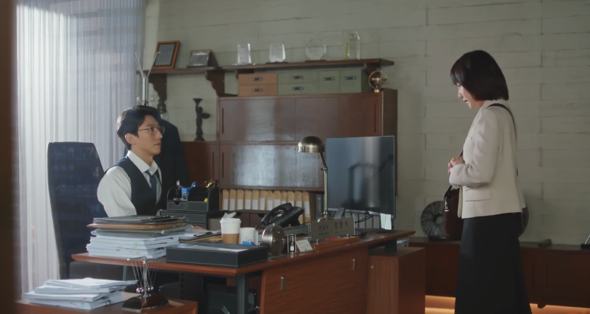 After watching episodes 3 and 4, there was this sense of appreciation for Attorney Jung who has grown tremendously since his first interaction with Young-woo in episode 1. The drama has set him up to be a mentor to Young-woo since he’s been an attorney in the industry for much longer than she has, but I like that he also doesn’t overdo it with his mentoring. In fact, he’s subtle about it. There are times where he’s more vocal and outspoken in his support for Young-woo as we saw in the last episode, but there are also moments like in this one where he’s less obvious. He hesitated in processing Young-woo’s resignation letter and came up with several reasons to justify his decision, but I think we can all agree that it was because he still wanted Young-woo to work at Hanbada. In addition to how talented and good she is at her job, he’s well aware of her passion and how much she has grown while at the law firm.