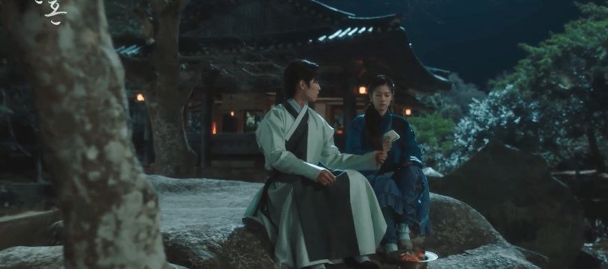 Things slow down a bit in episodes 9 after Jang Wook earns a spot into Songrim, giving him the opportunity to become a mage and learn the skills like his peers, Dang-gu and Seo Yul, have. The exciting new chapter in Jang Wook’s life also comes with a few new surprises, such as the inability to bring Mu-deok into Songrim since she’s now considered an outsider. This causes our two leads to be separated for the first time since they’ve met and the longing to be with each other to grow and I, for one, absolutely loved, loved, loved this yearning between Jang Wook and Mu-deok.