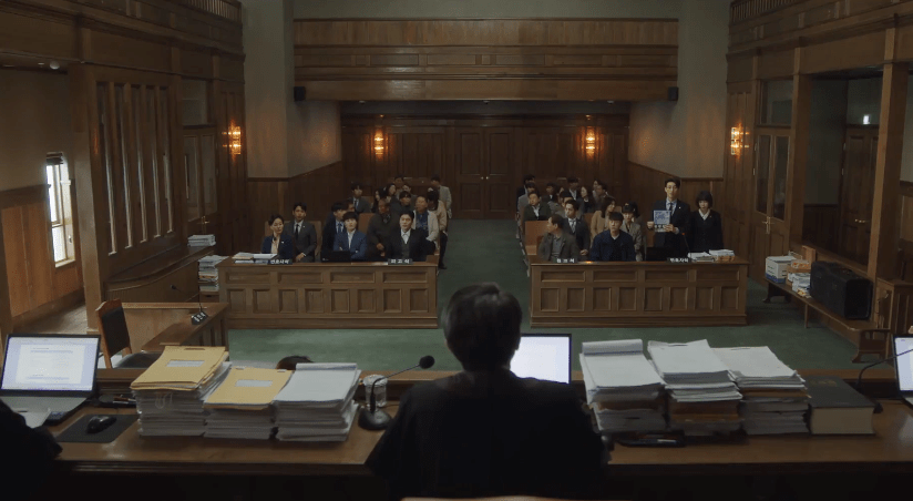 So during the next court hearing, Attorney Tae presents her results to the judges on the consent forms. More than half of the households in Sodeok-dong signed their consent forms and agreed to the compensation. As a result, the head judge dismisses the plaintiff’s complaint. Just as the head judge is about to wrap up the trial, Attorney Jung steps in and requests to file a motion to challenge the court. He brings up the umbrella created by Kyungpyo Construction and notes how the construction company handed it out to visitors who were checking out their model houses that will be built in the planned city of Hamun. This results in an unfair trial which is why the Hanbada team is filing the motion. Young-woo gets the last word by repeating the same phrase that Attorney Tae spoke to her back at the hackberry tree: