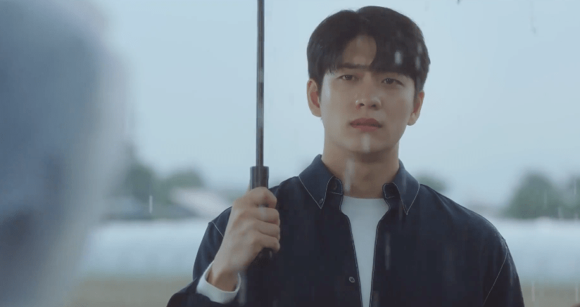 So Jun-ho and Young-woo chase after Yu-jin who escapes out of the building. They run and run even in the pouring rain and only manage to catch up to the him when a stranger nearby stops him. So with Yu-jin caught, Young-woo and Jun-ho talk to him again and this time, he doesn’t escape. He instead confesses the truth to them. Because of the news about the highway construction, he actually never proceeded with the request to evaluate the hackberry tree as a natural monument. And those experts who supposedly visited the hackberry tree? It was just a group of friends from his workplace who he recruited to play pretend. Young-woo glances at Yu-jin’s umbrella lying on the floor and notices the same dolphin logo that was seen on the umbrella that the head judge carried during the on-site verification. She learns that it’s an umbrella that a construction company called Kyungpyo Construction handed out to people who were visiting their model houses.