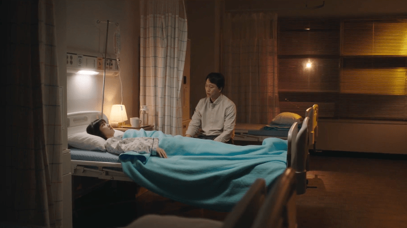 Young-woo stops in her tracks at the sudden bombshell so Dad reiterates the information. Attorney Tae is the woman who gave birth to her. She’s her mom. Young-woo turns around to take a step forward and accidentally loses her footing so she tumbles down the stairs. When she awakens, she finds herself at a hospital with Dad waiting right by her side. Thankfully, Young-woo is okay and Dad elaborates on the backstory between him and Attorney Tae. He lied about Young-woo’s mother passing away which Young-woo herself was already aware about. She found out through Grandma a while back. So Dad then explains his relationship with Attorney Tae and how it all started.