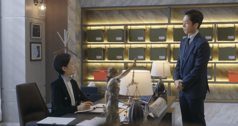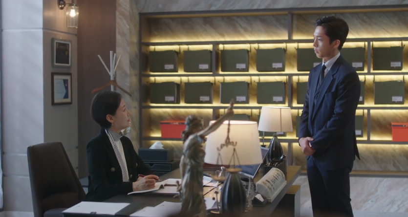 Young-woo and Attorney Jung meet with Mrs. Sung to discuss a potential divorce with her husband. Would she able to get some money from the lottery prize if they were to divorce? Young-woo once again mentions about having any hard evidence, but Mrs. Sung hasn’t been able to gather anything as Mr. Shin has already caught on to her actions. Since Young-woo and Attorney Jung represented Mr. Shin already, they share that they won’t be able to help Mrs. Sung with her lawsuit. But they’re happy to refer her to another attorney who specializes in divorce cases. Attorney Jung also adds that the chances of Mrs. Sung winning her case legally might be low.