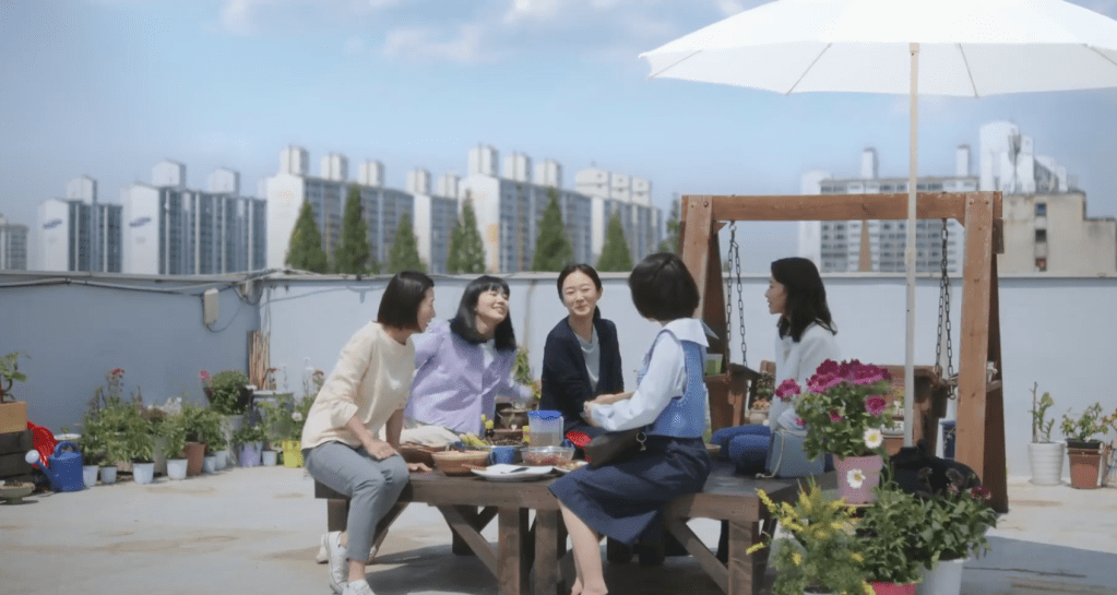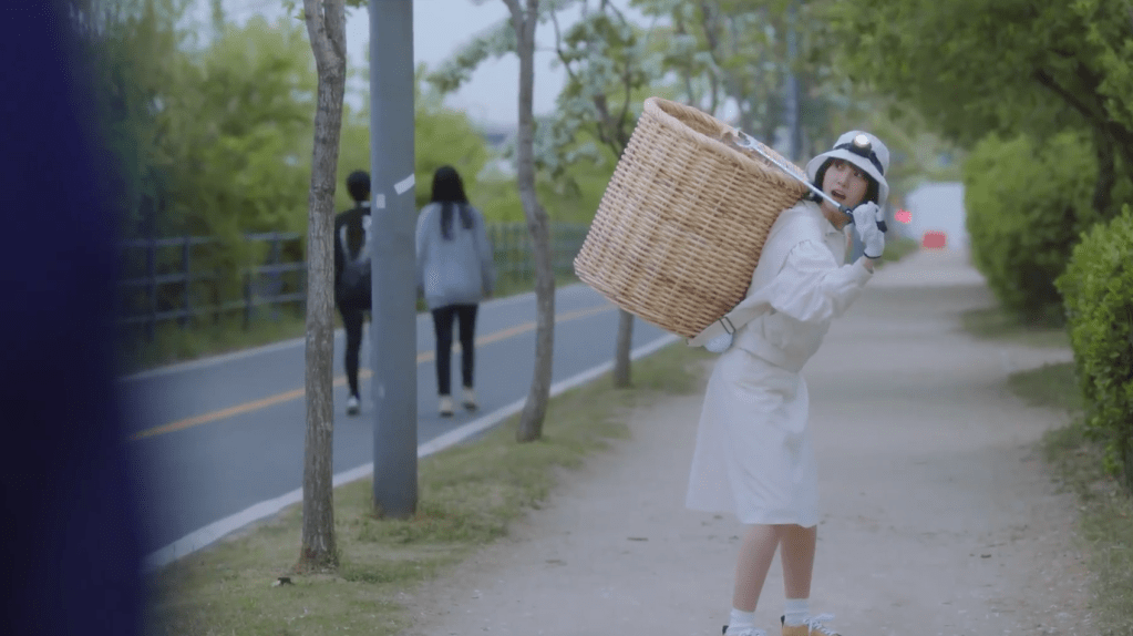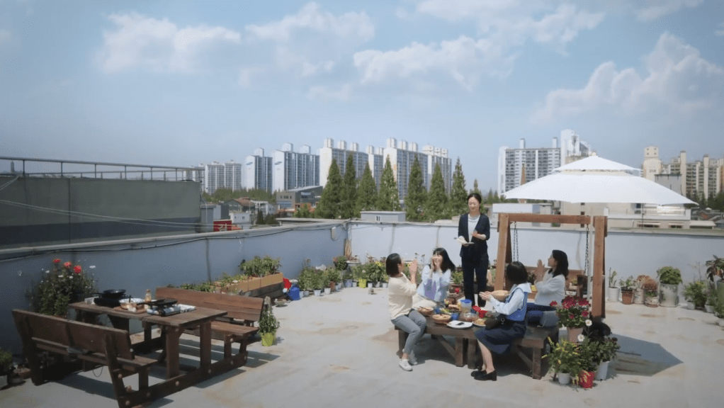 Young-woo makes it out onto the rooftop where Ms. Lee, Ms. Kim, Soo-yeon, and Attorney Ryu are. She joins them and they all reconvene to chat and catch up with each other. Turns out Attorney Ryu enjoys farming on the side and the three ladies also like to recite poems. But wait, recite poems? Don’t they have an appeal to work on? Young-woo sure does work for Hanbada as Attorney Ryu isn’t so concerned. As an attorney, you can also have fun in life as well. You don’t always have to get so caught up with work. And so it’s Attorney Ryu’s time to share the poem that she’s selected. While she stands up on the table and recites the poem, Young-woo sees a Yangtze river dolphin floating right behind Attorney Ryu. Her eyes light up at the sight of the dolphin as it swims away in the air.