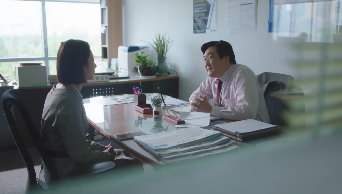The episode starts off with Ms. Kim Hyeon-jeong seated nervously at her desk. She’s the senior manager at a life insurance company called Mir Life Insurance Company and she’s called into the office for a meeting with the head of HR, Mr. Moon Jong-cheol. Since the company is undergoing the process of merging under another company, the owner of the company will change and restructuring will be impossible. Due to that, Mr. Moon mentions about the company’s policy of voluntary resignation for female employees who are married. Given that they’re married, they have double the income which means a better stability at life. If Ms. Kim refuses to resign, her husband will be subjected to unpaid leave. Although Ms. Kim pushes back on the idea, the director urges Ms. Kim to just follow through with the company policy. It would be embarrassing if her husband was fired while she still worked. Plus, her resignation would be the better option anyways.