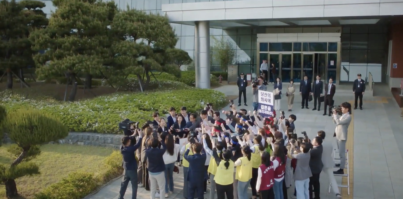 A current female employee with Mir Life is brought in to testify next. When asked about her perception of Mir Life’s company policy, she admits that she didn’t think it was discriminatory. In her case, her husband chose to voluntarily resign and she remembers the parts during her meeting with Mr. Moon about the benefits that came with voluntary resignation including severance pay as well as contract work. But Ms. Kim reacts in frustration in the courtroom; the company is attempting to use the restructuring as a way to turn female employees into non-full-time employees. The witness grows frustrated; there’s already so much going on with the merging of the company and now there’s the lawsuit. The current employees at the company are exhausted.