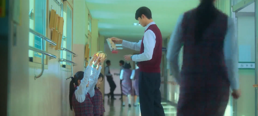 So Bo-ra sneaks the movie that Woon-ho wants from her family’s shop, but she’s not so lucky afterwards. She gets into trouble after her teacher (cameo by Lee Bum-soo) searches through all the students’s backpacks in class and discovers the erotic movie in her backpack. Hahaha. Along with a few other classmates, Bo-ra is punished by kneeling outside in the hallway and holding the movie up top of her head. Of course, Woon-ho comes around, grabs the movie from Bo-ra’s hand, glances at it, and then walks away with the movie. This only frustrates and upsets Bo-ra even more. He messed with the wrong girl!