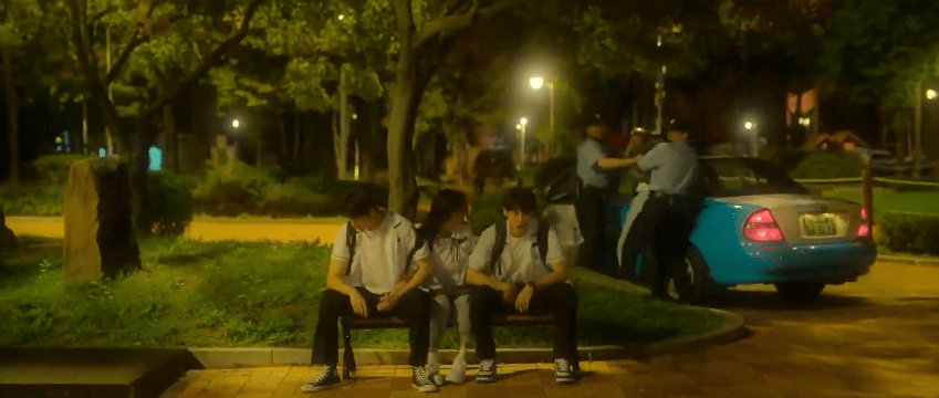 After the fun trip, Bo-ra hangs out at an arcade, but she’s suddenly pulled into another direction upon learning that there’s a fight nearby. So with a bunch of classmates, she rushes over to where the fight is only to discover that it involves Hyun-jin and Woon-ho. She swoops in with her taekwondo skills to beat up the gang and the three run away together, hand in hand, to escape. Eventually, they manage to successfully do so thanks to some police officers who are busy arresting a drunk man nearby. The gang runs away to avoid trouble from the officers and our trio is safe for now. Upon sitting down on the bench, Bo-ra notices Woon-ho still holding her hand and she jumps up in shock. She’s so full of adrenaline that she doesn’t even feel the pain from her sprained ankle. Oh nooo.