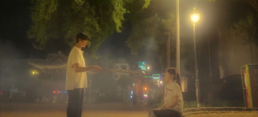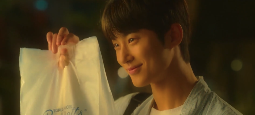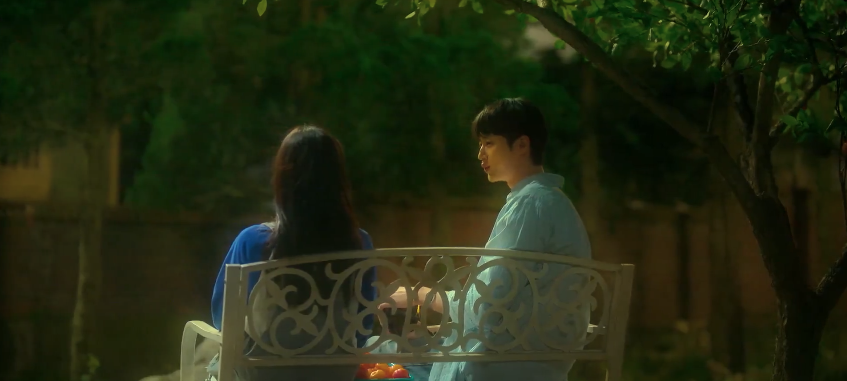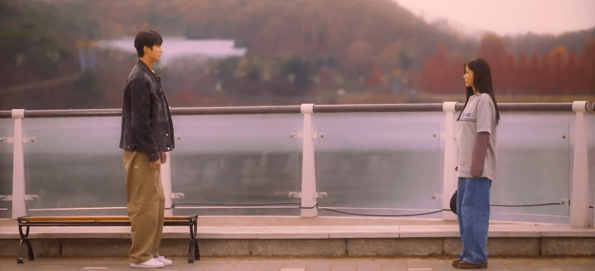 Fast forward to the present and adult Bo-ra stops by her parent’s family store. It’s empty inside so she’s reminded of the package that was sent to her and decides to take a visit to the exhibition. Once there, she watches in amazement and fascination at how beautiful and breathtaking the art is. There’s a particular piece of a plum tree alongside a white bench that stands out to her and Bo-ra scans for the artist’s name on the bottom corner of the screen. The art was created by none other than Woon-ho whose birth date is listed along with his name: 1983-2001. Right at that moment, Bo-ra is approached by a stranger: Woon-ho’s younger brother, Joseph (cameo by Ong Seong-woo).
