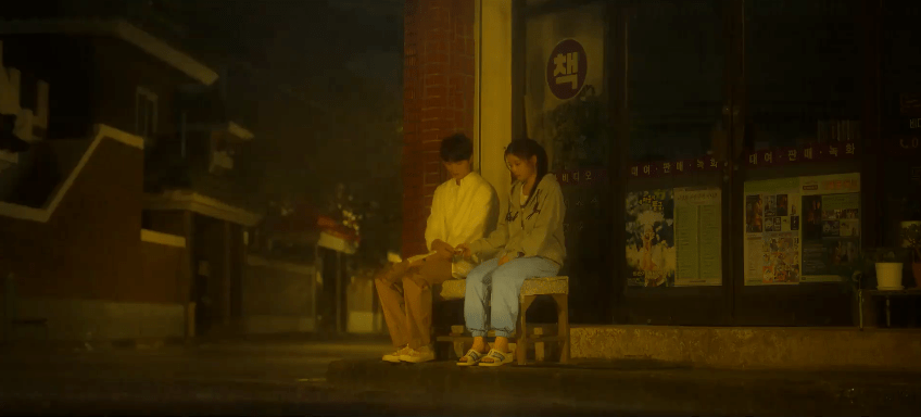 I really just do love all the nostalgia that comes with the 90’s and retro vibes with this movie. It works so well with the whole ‘first love’ theme and concept and I feel as if this movie beautifully captured that. This movie was about innocent love and first love’s and puppy love and it was also about enjoying the small little things. I mean, I can’t even count how many scenes in this movie made my heart flutter. Whether it was all the times Bo-ra and Woon-ho peaked at each other from across the street or when Woon-ho showed up at Bo-ra’s family store to tell her how he was working at the ice cream store across the street or when he and Bo-ra had their mini-plum date or when the two were on their field trip and Woon-ho taught Bo-ra how to record using the camera or when Woon-ho was changing Bo-ra’s bandage on her ankle and asked her about Hyun-jin or when they were so close to each other on the night that Bo-ra had a little too much to drink.