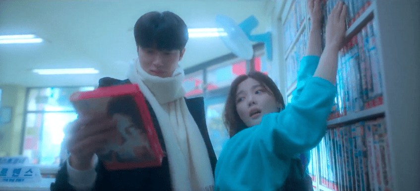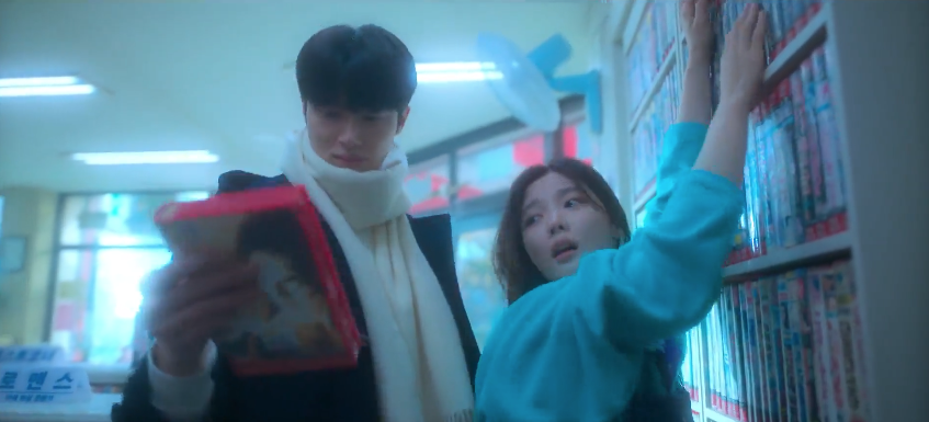Woon-ho’s first ever interaction with Bo-ra was actually at her family’s movie rental shop. He encountered Bo-ra sneaking the same erotic movie that he later on asked for, but she didn’t notice him as she was too busy running out of the store to not get caught by her dad. Lol.