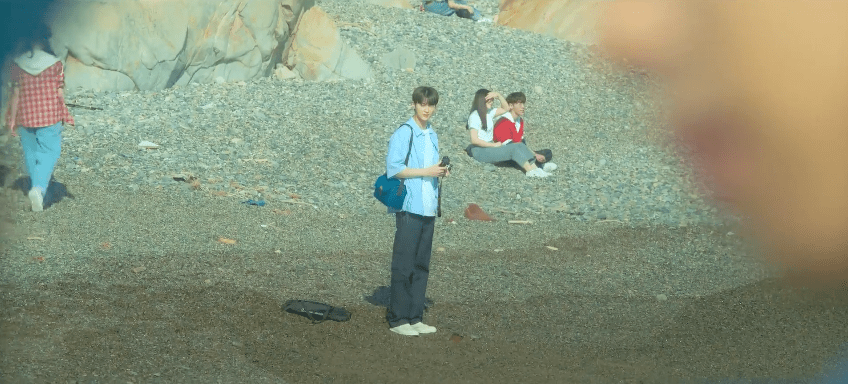 The next morning, Bo-ra is the last one to wake up and it’s obvious to her teacher what happened the night before. As part of the field trip, everyone does some trash cleaning at the beach. Woon-ho hands Bo-ra some juice to help her with her hangover which she can’t help but notice for his kindness. She at one point watches him from afar as he snaps some photos with his camera. But this peaceful moment is interrupted by Hyun-jin who catches on to how Bo-ra is feeling. So he suggests that the three take a group photo together on the beach. With that, the trio gathers into the same frame and Bo-ra sends the photo to Yeon-doo.