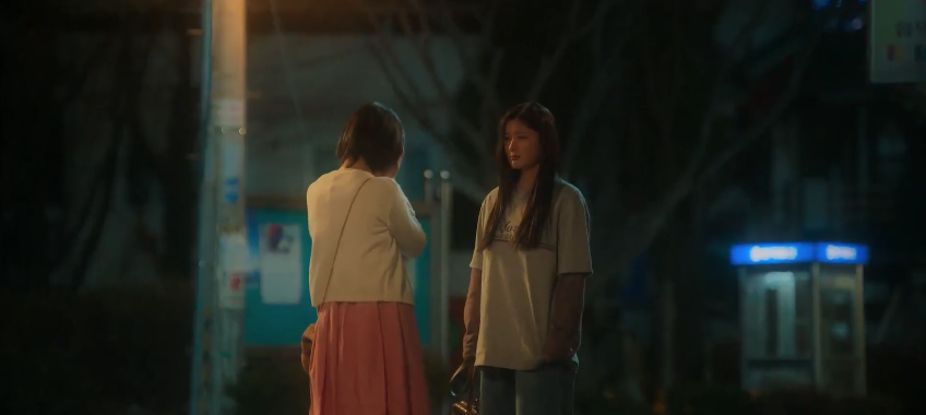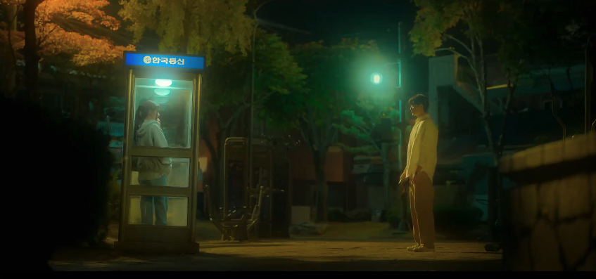 The uncertainty and weight weighs heavy on Bo-ra’s mind and she sneaks out to the pay phone in front of her house to call Woon-ho. Fast forward a few seconds later and Woon-ho appears in front of Bo-ra. It didn’t take long for him to figure out which pay phone she was at and he’s happy to be reunited with her again. So the two sit down and Woon-ho assumes it’s business as usual. Except it’s not. Not for Bo-ra at least. She returns the cellphone that Woon-ho handed to her as a gift and clarifies that she doesn’t have feelings for him. She doesn’t like him. After the cold confession, she walks away and leaves. But there was also a reason as to why Woon-ho wanted to meet. While walking back to his place in the rain, he glances at the envelope with the letter that he had written for Bo-ra. He writes,
