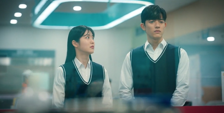 However, through all the investigations and clues and murder suspects and school drama, my favorite thing about this drama continues to be Chan-mi and Soo-heon’s relationship and the way they remind each other to stay grounded and focused. When Chan-mi was so upset and wanted to confront Oh-sung, Soo-heon reminded her not to go after him alone. When Soo-heon was in serious danger of getting caught by the detective, Chan-mi did her part by grabbing his stuff and taking it with her (for reasons of her own of course). When Soo-heon’s mother was in the hospital, Chan-mi accompanied him to visit her and she cried for him because she felt so powerless and couldn’t do much for him. As a birthday gift, Soo-heon gifted Chan-mi his mother’s valuable and meaningful red shoelaces per Chan-mi’s request. The two make sure to get on the same page and work together as a team to get the information and progress they need on their investigation. When the two aren’t on good terms with each other and it seems as if the tension between them is about to explode, they’re suddenly reminded that they’re on the same team. That they only have each other. That they can only trust each other.. That it’s them against the world.