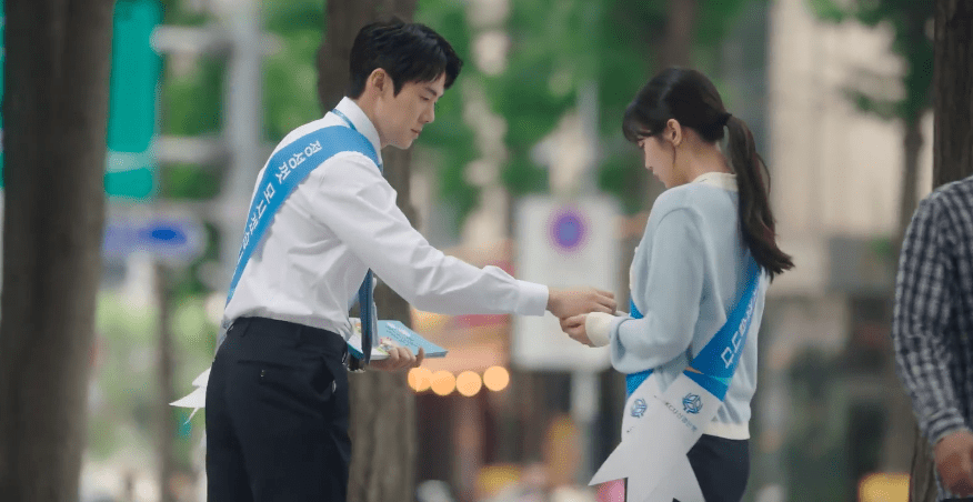 It felt like episodes one and two would have been better fitted to be episodes 3 and 4 or maybe even 5 and 6. Episodes one and two did not feel like what the first and second episode of a drama should be. It was adorable watching Ahn Su-yeong (Moon Ga-young) and Ha Sang-su (Yoo Yeon-seok) get to know each other better and bond in episode one, but I guess I just needed more context and background information. We learn that she was his senior at the bank they work at and she trained him when he was still a rookie/trainee and he ended up developing feelings for her over time. But I needed more buy-in and I needed more reasons as to why I should root for Sang-su and Su-yeong to get together or why I should care for their relationship.