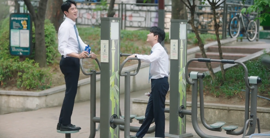 It felt like episodes one and two would have been better fitted to be episodes 3 and 4 or maybe even 5 and 6. Episodes one and two did not feel like what the first and second episode of a drama should be. It was adorable watching Ahn Su-yeong (Moon Ga-young) and Ha Sang-su (Yoo Yeon-seok) get to know each other better and bond in episode one, but I guess I just needed more context and background information. We learn that she was his senior at the bank they work at and she trained him when he was still a rookie/trainee and he ended up developing feelings for her over time. But I needed more buy-in and I needed more reasons as to why I should root for Sang-su and Su-yeong to get together or why I should care for their relationship.