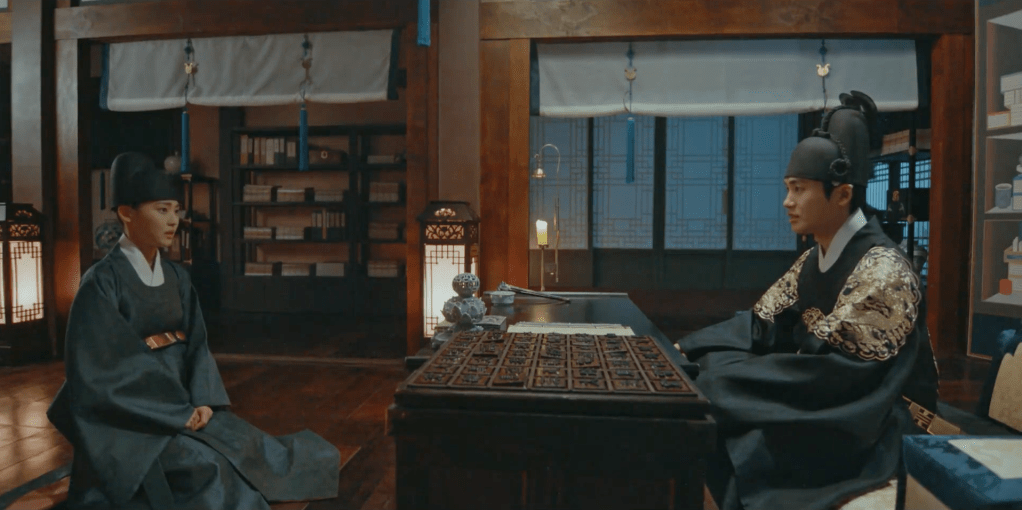 I wished there were more cases that Jae-yi could have solved because again, I just found the whole murder mystery investigation process fun and exciting to watch. We got to see Jae-yi do what she does best and had been doing for years; we got to watch her as she bounced off of other people’s ideas or theories and used it to solve the murder mystery. She was essentially a detective playing a pretend “eunuch” and I thought the mini-adventures that she went on with Myung-jin, Ga-ram, and Scholar Park (AKA Crown Prince Lee Hwan hahaha) was exciting. You got your primary group of characters involved and in on the action while also developing their bond and connection as a team. You got to witness your smart, strong, and competent female lead do her thing. You got to witness Jae-yi and Lee Hwan pick each other’s brains and communicate on the case and how it related back to their individual situations. And from watching Jae-yi be a detective, it then makes the transition to her solving the mystery behind her family’s deaths much more seamless. You know she’ll eventually be able to put the puzzle pieces together to discover the truth behind her family’s deaths because we saw her do it before. Overall, I really enjoyed this little warm-up murder case to what will eventually be the primary premise which is Jae-yi and Lee Hwan’s stories. I just wished it didn’t end so soon and if possible, the drama loop in another murder mystery case because it was fun to watch this first time around. It’s different from what you usually see in other sageuks.