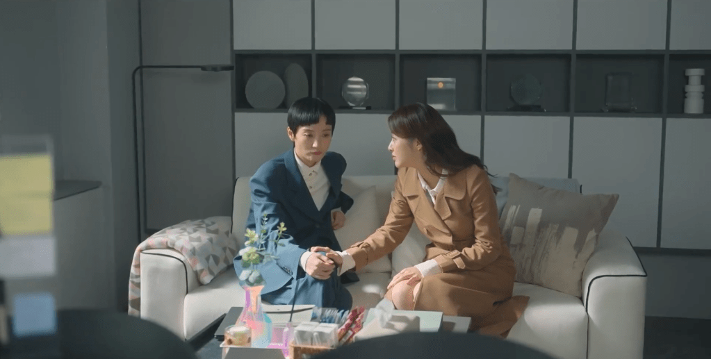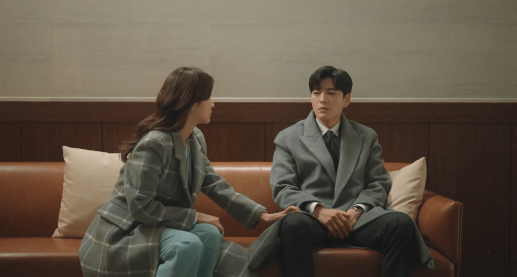 And so I waited and waited and even through episode 11, I felt like we didn’t get much. We got the reflecting and the advice-seeking part, but I wasn’t completely sold on Ha-ra’s affection towards Eun-beom through her actions. I got concerned and worried and doubted the drama for a second. But then the show came through and delivered in its final episode in a few ways: Ha-ra was there to support Eun-beom when his mother was hospitalized and she was the one to inform him at the office about his mom’s condition and 2) she transitioned to another job that offered better pay, opportunities, and a change of scenery so that Eun-beom could remain at the law firm. The actions and thoughtfulness that I had been waiting from Ha-ra appeared in the last episode; I felt as if I could breathe and accept the drama a little bit easier with this progression and development on Ha-ra’s part. I just wanted to see more and the drama gave us more in its final episode. Ha-ra bridged the traumatizing and painful gap between Eun-beom and his mom; she used their relationship as a reason to also bond with her own mother. We witnessed how much Eun-beom had done for Ha-ra dating back to their marriage days and how he accommodated her through the smallest things. The final episode showed us Ha-ra’s gratitude and appreciation towards Eun-beom by how she also committed a few acts of service for him. The two clearly appreciated and loved each other by being there for each other during their most difficult times and serving as a source of support in those moments.