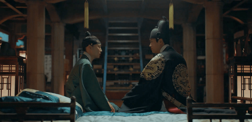 Episodes 13 and 14 slowed down on other parts to focus on Jae-yi and Lee Hwan’s relationship which was a nice decision. The development made sense and was nicely paced: the two have feelings for each other but they’re also reminded of the doubts they have in staying together. Lee Hwan doesn’t want Jae-yi’s life to be in constant danger because of him but Jae-yi is committed to being with Lee Hwan to protect him and because she likes him. I loved seeing the two together whether it was when Lee Hwan got jealous when Jae-yi mentioned that she had feelings for somebody (PSTTTT Lee Hwan, the person is a lot closer than you think! Dare I say, he’s actually someone you know). Or when Lee Hwan shared a story about his brother to Jae-yi and talked about the version of Joseon that he wanted to see his brother create. It’s as if the two know they should “break up”, but there’s a yearning they have for each other that won’t allow them to. Jae-yi and Lee Hwan won’t give up on each other and their loyalty and trust in each other is unparalleled. Though it’s true that their lives are in greater danger the more they are together, it’s also evident that they give each other more reasons to stay alive by staying by each other’s side.