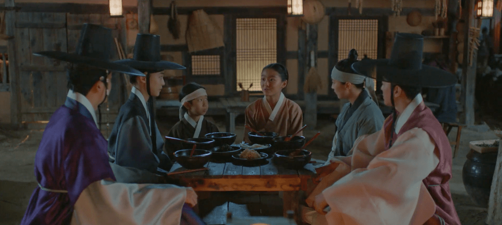 The part that I’m the most worried about is what Right State Councilor Jo plans to do now that he’s aware of both Jae-yi’s identity as a pretend eunuch and the whereabouts of Ga-ram. We’ve seen his guys go around killing people who are threats to him and his plans so he could do the same again. Additionally, I knew this moment was eventually going to arrive where Right State Councilor Jo was going to find out about Jae-yi and Ga-ram. Now that it’s finally here, it’s still scary because we know what he’s capable of and how manipulative and meticulous he is. Let’s hope Jae-yi and Ga-ram can stay safe because that dinner scene towards the end of episode 14 gave me ominous vibes and I did not feel good about it. It was heartwarming watching the two little villager kids eat and spend time with our group of friends, but the slow motion of their smiles and their singing and them feeling like a family? It felt as if the the drama was foreshadowing something dark that will happen to this group that will break them up and it made me want to cry (in both a good and way). Please tell me I’m just overthinking things and everyone will come out of this alive and well T_T