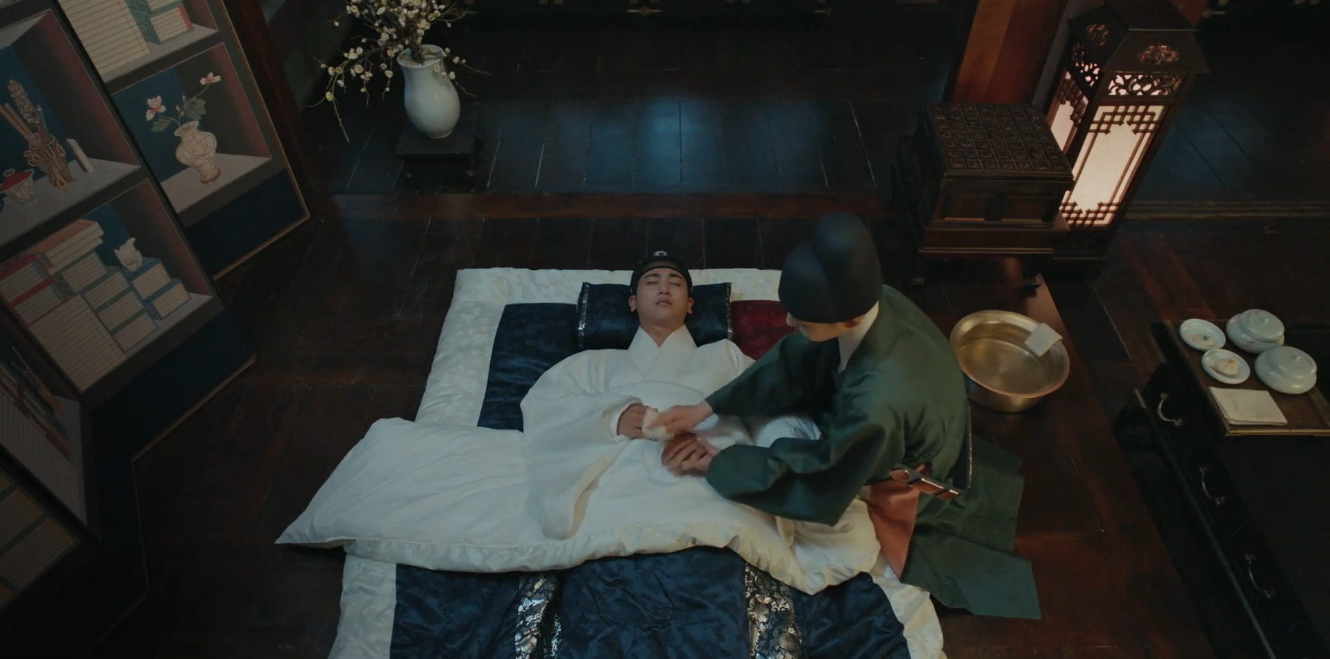 Jae-yi took care of Lee Hwan as he was unconscious and recovering. When Jae-yi got a small scar on her face (due to a traditional “loyalty test” she underwent to test her loyalty to Lee Hwan), he treated her scar and took care of her then. Perhaps my favorite scene to have come out of this week’s episodes was the moment when Lee Hwan woke up in his room and found Jae-yi right next to his side. As she stood up to change the bowl of water, he called her by her name “Jae-yi” and not by her eunuch name. I’m not kidding when I say that I paused and gasped at that moment.. because.. HE CALLED HER BY HER NAME [!!]. If I remember correctly, this is also the first time he’s ever called her by her real name so that definitely was a big deal! Lee Hwan also said it at a time that was so emotional and vulnerable and intimate for the both of them. They had initially thought they lost each other and then Jae-yi was concerned for Lee Hwan’s health once they reunited. Then she stayed by his side and took care of him while he was recovering and he knew how important this moment was for the both of them so he vocalized her real name to grab her attention.