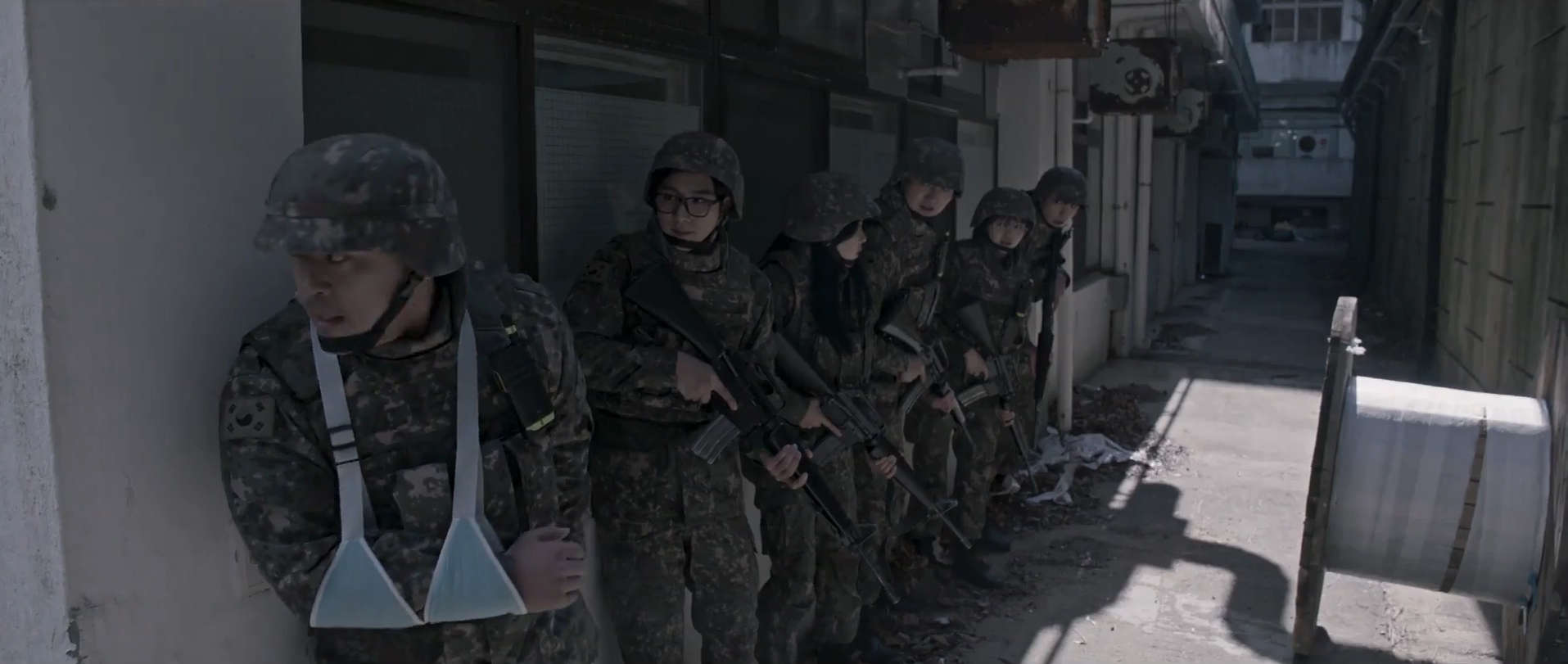 ‘Duty After School’ centers around a group of high school seniors who participate in military training to prepare for battle against strange alien creatures that have suddenly appeared on earth. The drama follows the group of students as they engage in war against the monster creatures and their journey from students to soldiers. Some of the cast members include Shin Hyun-soo as the Platoon Leader of the group Lee Chun-ho, Im Se-mi as the group’s teacher, Kim Ki-hae as Kim Chi-yeol who serves as the main character in the drama, and most importantly (for me) – Lee Yeon as the isolated and reserved No Ae-seol (who some of you might recognize as the younger version of Nam Haeng-seon in ‘Crash Course in Romance.’ EEEEEK!). The drama is divided into two parts with the first part consisting of the first six episodes. The second part will be released on April 28 with the remaining four episodes for a total of ten episodes overall.