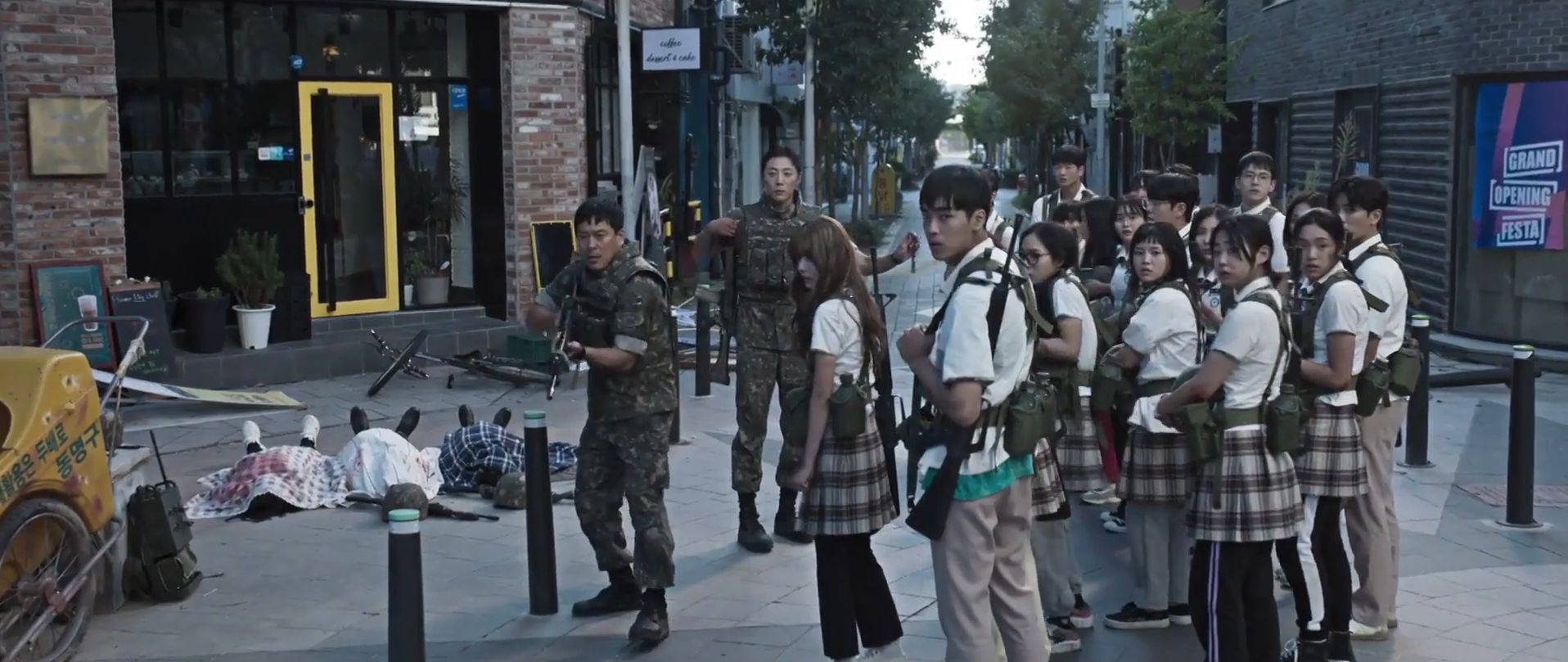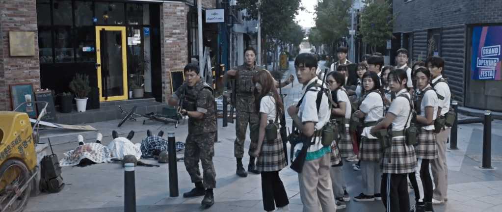 Adding onto my point about the human element of this drama, the students formed a special connection with their Platoon Leaders, in particular the main leader, Lee Chun-ho. He was another bright spot in this show given that he was the primary leader responsible for the lives of the students. He definitely had character development from when he started off as someone brought in to train the students to getting to know them over time to bonding with them to risking his life to rescue the students to eventually sacrificing his life for their safety. As he got to know the group of students better, he was able to identify who the best shooters were, who the leaders of the group were, what each student’s strengths were, and how each student was. He also became attached to them over time and felt as if he was responsible for their lives. Chun-ho did all that he could to protect the students and took care of them. Whether it was when they were out roaming the streets to kill off the alien creatures or back at their camp site, Chun-ho placed the students first. Even until the very end, in the last remaining moments of his life, he put the students first. He was always a leader and will forever be their leader.