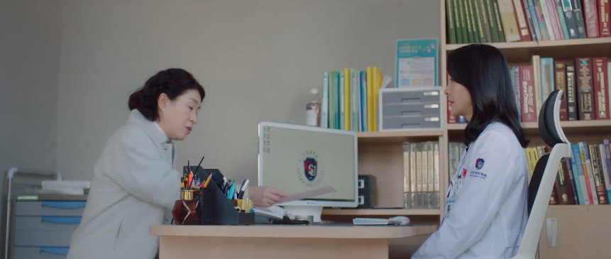 Mom wants to leave the hospital but she’s brought in for therapy treatment right away. Thankfully, Mom’s treatment goes well and she recovers in the hospital. Jeong-suk studies more about her mom’s rare condition and she even peeks at some of Seung-hi’s papers when she stops by Seung-hi’s office. Seung-hi too seems to be studying about her mom’s condition and diagnosis. In a meeting with the Family Medicine department, Seung-hi brings up Mom’s situation as a topic and they discuss her health. They’re a little confused at the moment with what Mom’s health condition is. After Mom’s treatment, she begins to pack her belongings to leave the hospital. Jeong-suk stops her mom and begs for her to stay to get treated. Gusan University Hospital is the best hospital there is and plus, she wants to be there with her mom during this difficult moment in their lives. Mom sympathizes with her daughter and they shed tears together.