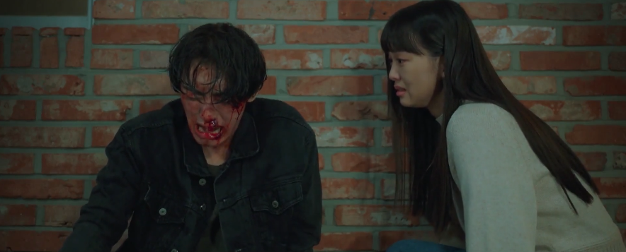 While waiting outside of the police station, Yoon-young questions where Yoo-seob could be hiding and then she’s reminded of a moment back when she was in high school. She had confronted her dad about his carelessness towards her mom who was in the hospital. Yoo-seob was also there during the intense confrontation and he made his way to the attic in their house to hide. So Yoon-young rushes over to Detective Baek’s house to search the attic. And sure enough, she discovers Yoo-seob sitting inside all alone in the attic. He’s wounded and bleeding and it’s obvious he doesn’t look so good. But he’s worried about Hee-seob so Yoon-young updates him on the situation.