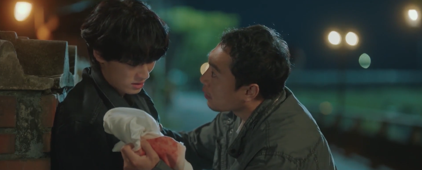 A while later, Yoon-young finally spots Hee-seob leaving the building and he’s seen limping on one leg with a bloody face and beaten up body. It all makes sense to Yoon-young now why her father walked with a limp (wow, this scene made me speechless!). She quickly approaches Hee-seob to check in with him but Hee-seob downplays the situation. He’s okay and he reasons that he must have done something wrong to warrant this type of beating. Because if he didn’t do anything wrong, then why in the world would something this horrific and tragic happen to him? Hee-seob begins to cry and he lets out all his emotions. Just why did this happen to him? What did he do wrong? Yoon-young also cries at the sight of her dad crying and she begins to question herself. Who is she and what is she doing there? How can she explain any of this to her dad? There she was, sitting with her dad and crying with him on what was the darkest night of his life. Yoon-young and her dad continue to cry their heart out together. No words can accurately describe their feelings and emotions in this moment.