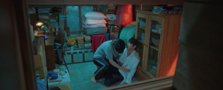 Back in the attic, Yoo-seob pleads for Yoon-young’s help. He wants to save his brother and he’s aware that the police are after him. So the two make their way to the police station but they encounter Hae-joon on the way and they change their plans. The trio head to the inn in the neighborhood where Hae-joon had witnessed the van circling around and Hae-joon is certain that Hee-seob is inside the inn. So Yoo-seob and Hae-joon enter the building while Yoon-young anxiously waits outside.