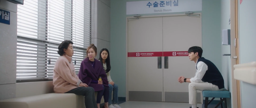 In-ho is clearly nervous for his surgery and he runs through things with all his Surgery residents once again. Jung-min has to step in at one point to reassure his dad that everything will be fine. Jeong-suk and Roy converse and they find themselves once again in another similar situation. Roy is operating on Jeong-suk’s surgery just like he did the first time around. The biggest difference this time is that In-ho is the donor. So it’s the day of the surgery and In-ho is visibly nervous. He puts all his trust in the residents as well as Roy who will be operating the surgery. While Jeong-suk and In-ho undergo surgery led by Roy, their family as well as Mom wait outside anxiously. Mother-in-law doesn’t feel all that great about her son donating his liver to Jeong-suk but Mom argues that Jeong-suk is still the mother of his children and that she was a great daughter-in-law. They’re also curious about any divorce updates but Mom doesn’t have a response for them.