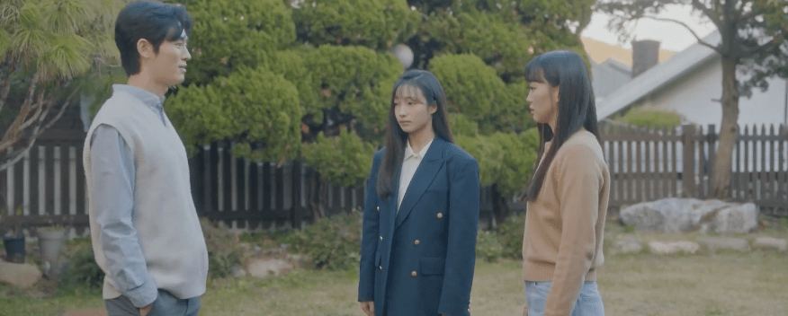 Min-soo is picked up by Mi-sook and the siblings head home together. Mi-sook is nervous as evident by her playing around with her necklace as she follows her brother home. Yoon-young spots Min-soo and Mi-sook walking home together and she follows after them to save Mi-sook from her brother. She pretends that they made plans to hang out together and the two ladies leave. Once they arrive at the village river, Yoon-young checks in with Mi-sook. Her brother’s released from jail and three people are dead. How does she feel? All Mi-sook can do is break down into tears and cry. She has nothing to say.