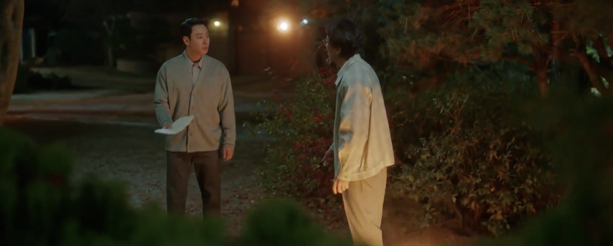 Hae-joon puts a few puzzle pieces together and he recalls a childhood memory of Principal Yoon taking away a letter that his dad wrote for him. It then clicks to him that his grandpa knew about Yeon-woo’s handwriting and letters all along so Hae-joon embarks on his own personal mission to Principal Yoon’s house. And sure enough, Principal Yoon is seen burning Yeon-woo’s letters to Chung-Ah outside his house. Hae-joon arrives just in time to scold his grandpa for his actions and to grab the few remaining letters left. Principal Yoon vows that he’s doing all of this for Hae-joon’s sake but Hae-joon doesn’t buy into it. His grandpa originally swept everything under the rug to protect his son and he mistreated Hae-joon for all of Hae-joon’s life. Hae-joon knows the truth. None of what Principal Yoon is doing is for him.