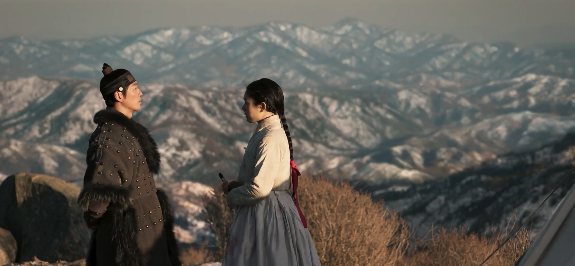 The thing that I’m impressed with the most with Jang-hyun and Gil-chae’s relationship is how romantic and genuine it feels even if the characters themselves aren’t screaming that they’re in love. They express their feelings to each other in very subtle ways that also makes it clear how they feel about them at the same time. For example, at the end of episode 5, Jang-hyun bids farewell to Gil-chae but he also adds that he’ll do whatever he can to find her in the future. They’ll separate for the time being which means there was a higher risk of getting captured or getting killed but Jang-hyun reassured Gil-chae that they would eventually reunite again and that he would do whatever he could to see her again. There was also THE moment in episode 5 when the two reunited after having been separated for a bit and Gil-chae’s eyes lit up upon seeing Jang-hyun again. The scene was executed in slow motion and it was just absolutely beautiful and touching.