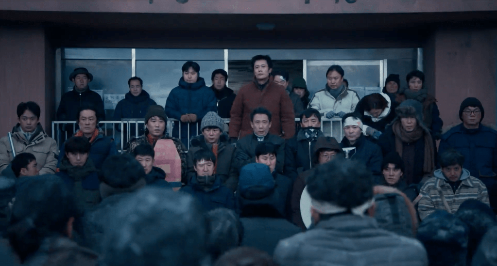 If I find the premise or main plot of a movie or drama interesting, I won’t be shy to admit that I’m a fan of it. But interestingly enough, ‘Concrete Utopia’ was one of those movies where I wasn’t as intrigued by the premise. Adapted from a webtoon, there’s a massive earthquake that causes destruction and damage in Seoul with the exception of one apartment complex that is the last building standing in the area? And now it’s up to the residents to “defend” their home from visitors and outsiders? What’s going to happen? How are they going to defend themselves? How is this movie 2 hours long? So I really didn’t have too many thoughts about it and wasn’t really sure what to expect. Heck, I even continued to have these thoughts as I watched the first half of the movie where the movie laid out the foundation. The movie started off by showing the massive earthquake and then the aftermath of what happened. Then we got a glimpse of the supporting characters – the residents of the apartment complex – and their plan in kicking out any outsiders who didn’t live in their building. Then once the outsiders were kicked out and removed, we saw the residents create a system where there were order, rules, and guidelines. There were task forces for all types of purposes and most residents played a role in maintaining this system. So after showing all of this in the first half of the movie, I just couldn’t help but wonder what the next hour was going to cover. Other than the massive destruction that the earthquake caused and with all the outsiders already being removed, what else was going to happen?