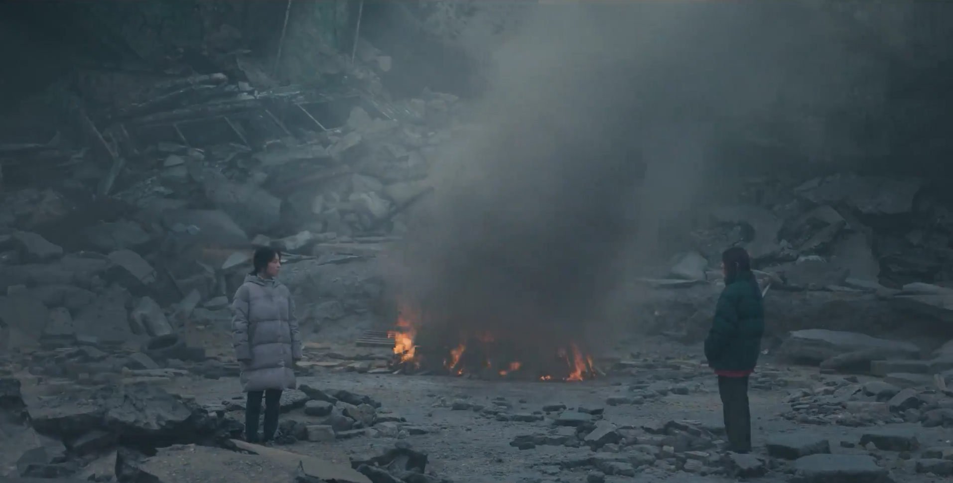 ‘Concrete Utopia’ follows the story of a group of survivors after a huge earthquake causes massive destruction in Seoul. The survivors are residents of an apartment complex that is the only remaining standing building in the city. The group is led by Young-tak (Lee Byeong-hun) who is supported by fellow resident and public servant, Min-sung (Park Seo-joon). Park Bo-young portrays Min-sung’s wife, Myeong-hwa – a nurse who takes care of others in the building.