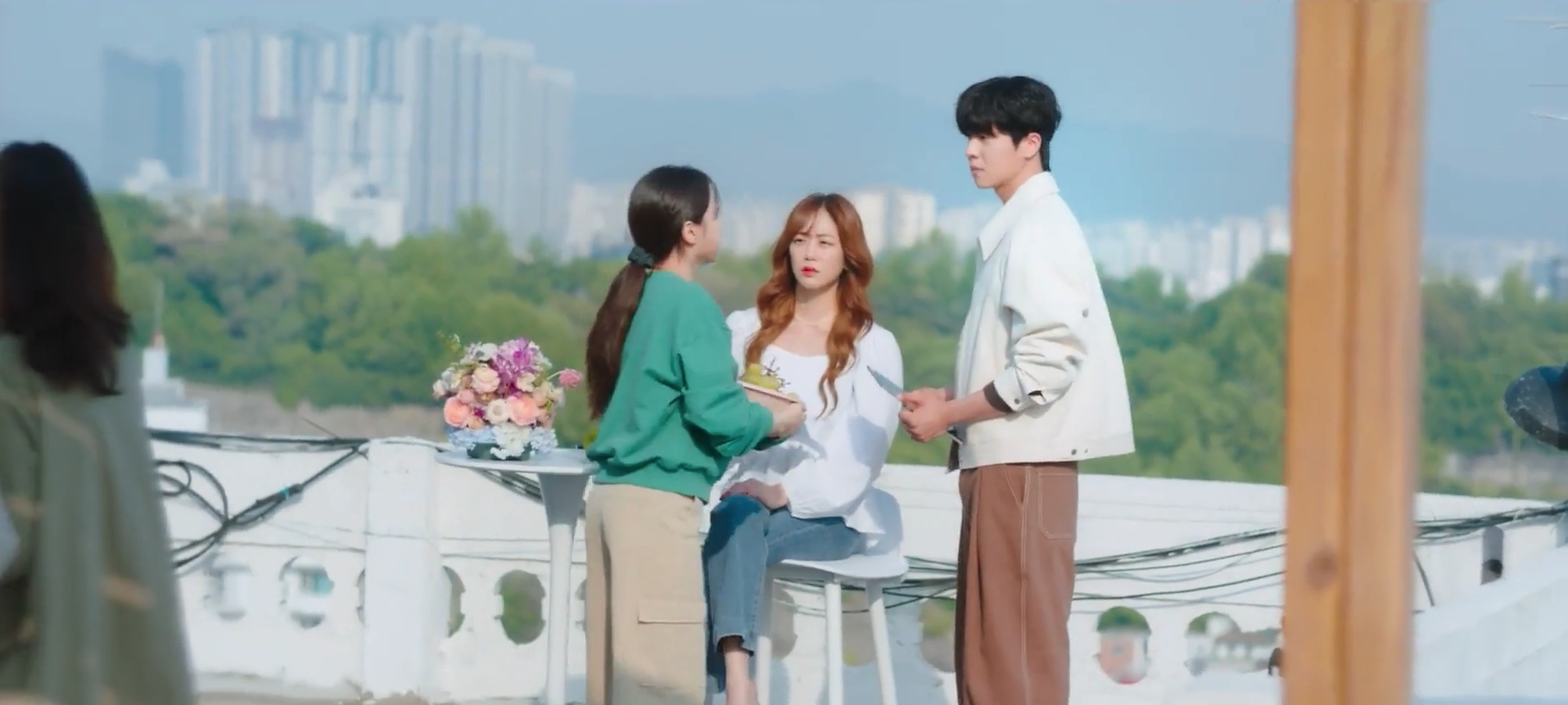 To prepare for Ran-joo’s episode of ‘Heyday Again’, Bo-geol recommends another thing to add onto Mok-ha’s to-do list: create an email account. Woo-hak stops by Bo-geol’s office and scolds Bo-geol for not being of help to Mok-ha. He stops by his parent’s salon afterwards and discovers Mok-ha working there. He’s relieved to learn that his parents can finally eat lunch together now and he joins Mok-ha for some food. While munching on gimbap (wow, now I want some!), the two chat about Ki-ho once again. Mok-ha’s still discouraged at how she hasn’t heard from him yet. She assumes he either doesn’t want to find her or he’s not alive. But Woo-hak proposes a third option: maybe Ki-ho lost his memory like he did. Woo-hak suffered an accident before high school that caused him to lose all his memories. He didn’t even remember his parents, there are no pictures around, and he also isn’t in contact with his childhood friends. Who knows, maybe Ki-ho also experienced something similar. Since the two are eating together, Mok-ha makes it clear to Woo-hak that he can call her anytime he wants someone to eat with. As someone who’s eaten alone for 15 years, she knows what it’s like and it’s something she never wants to experience again. Woo-hak is moved by Mok-ha’s sincerity.